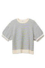 unit price perthe rebecca stripe cotton short sleeve sweatshirt by perfect white tee will be your new go-to sweatshirt. made in soft cotton and will take you from pilates to dinner and everything in between. the tacked sleeve and oversized fit makes it that perfect, throw-on-and-go piece.