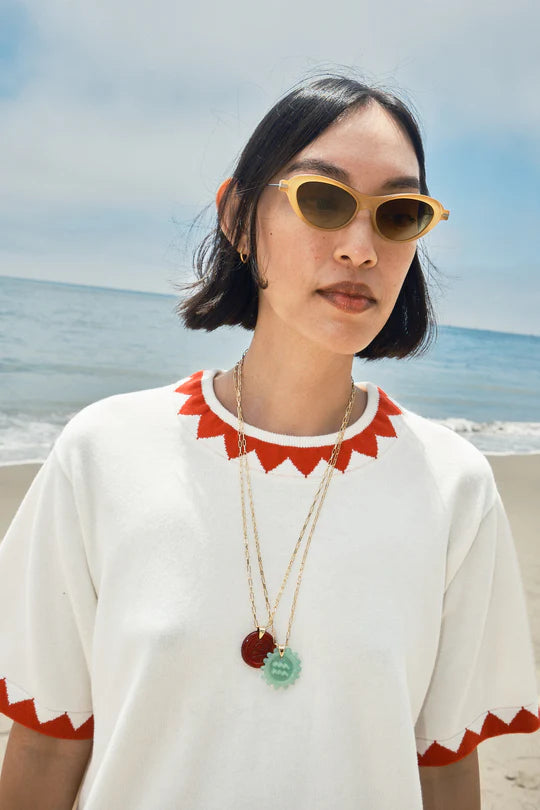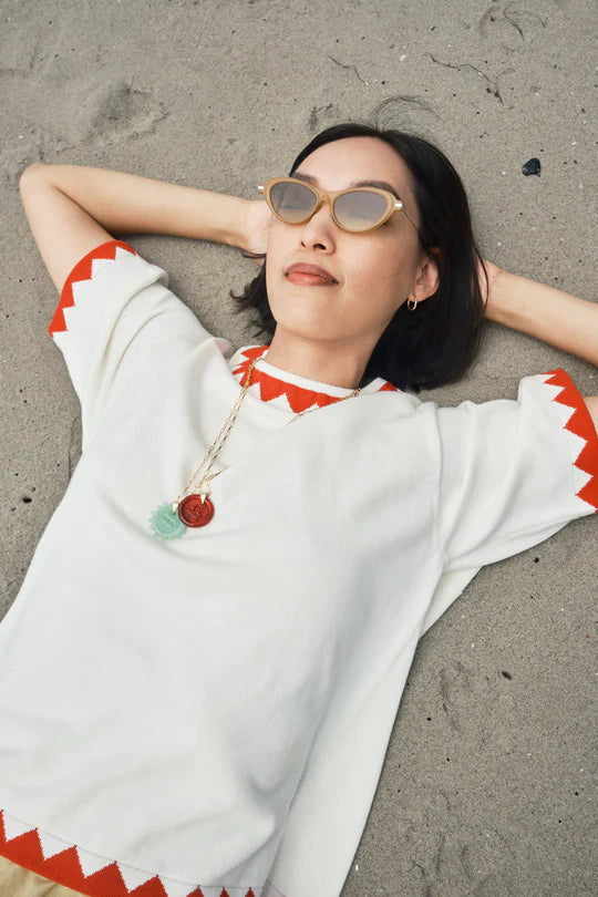 the sawyer zig zag sweater tee by nikki chasin is a medium weight fully hand knitted top. throw it on over your favorite pair of jeans or skirt. there’s no right way to wear this one and we love that.