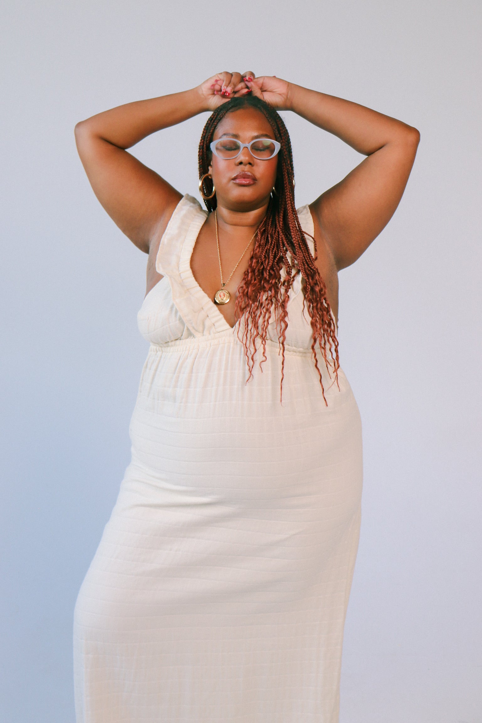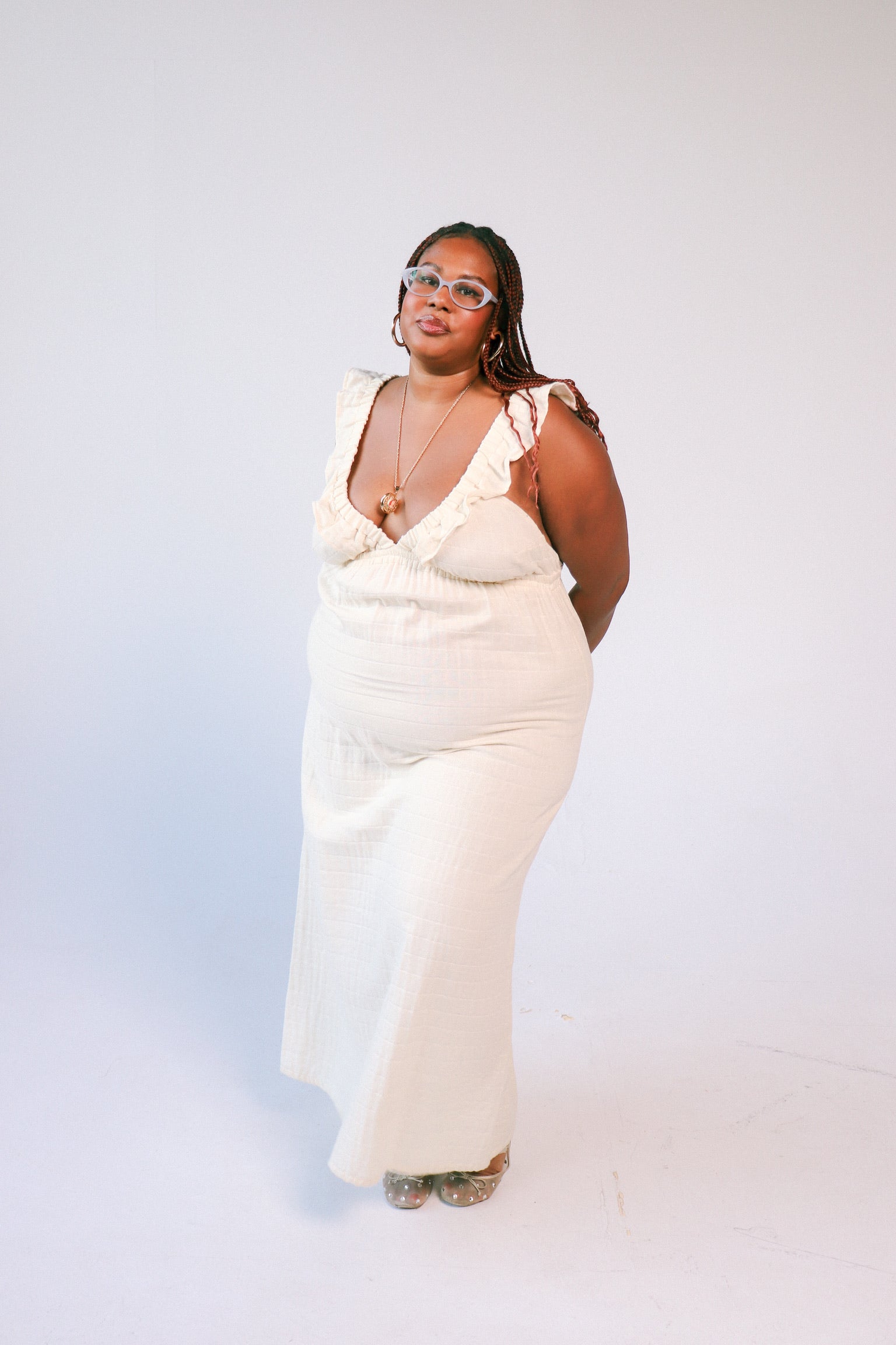 the harly jae milos dress is an ultra-feminine, vintage-inspired empire-waist linen dress with ruffles. it is a braless piece supported by fully elastic straps that also allow for breastfeeding. when first purchased, the fabric doesn't have a very pronounced 'gauze' effect which can make it look more see-through; but don't worry, after the first wash you will get the textured gauze we all love which will add opaqueness to the garments. in the photos, the dress has not been washed. (see before & after swatches in pictures).