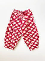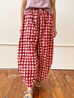unit price perthe marius pant madder and pink check by happy french gang are easygoing and endlessly wearable. they are designed to move with you—thanks to a flexible elastic waist, adjustable drawsticks, and roomy side seam pockets. one size fits many (recommended for sizes small to x-large). they are hand-block printed.