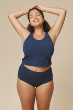 the high waist brief by jungmaven is a slightly high-cut, high-rise brief designed for everyday comfort. the high-rise hits right at or above belly button, with medium coverage in the back for a flattering fit. crafted from a mid-weight, silky soft 8 oz hemp stretch blend, it moves with you and feels breathable against the skin.