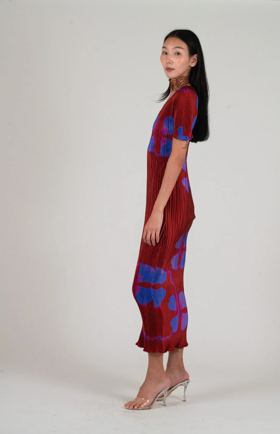 the aphrodite dress runs true to size. it is 100% deadstock poly charmeuse, and we recommend hand-wash cold + lay flat to dry. dry clean for longevity.