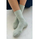 le bon shoppe her socks are ethically-made in south korea. their ethos centers around producing limited quantities of timeless staples that are made to last.