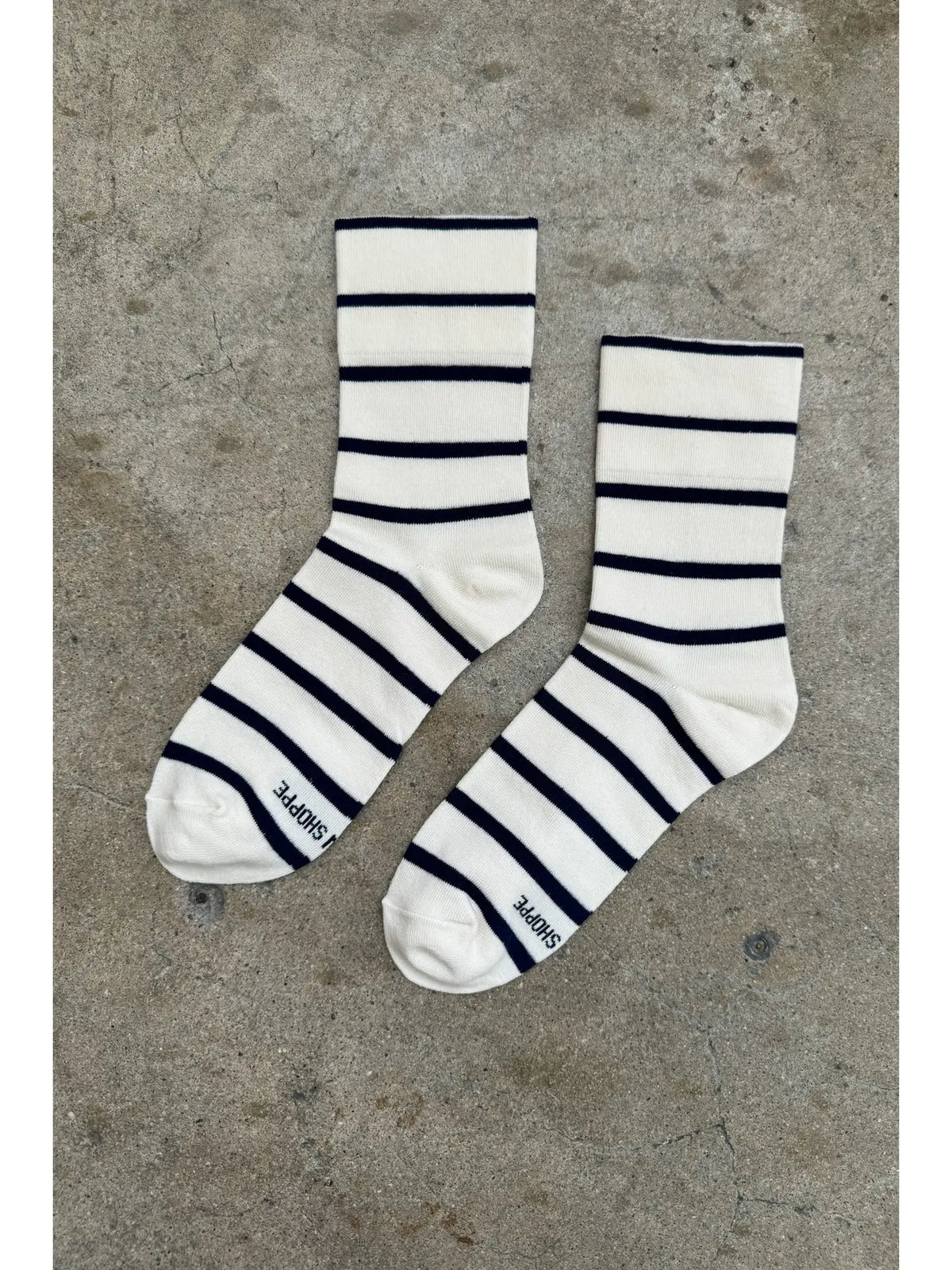 the le bon shoppe wally sock is a classic and forever staple in every girls closet that transcends seasons and trends. made in a timeless stripe reminiscent of a parisian cool girl, wally loves to be styled with a colorful pair of mary janes, ballet flats or a cool city sneaker.