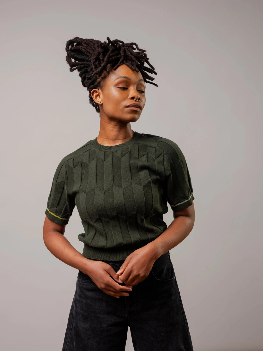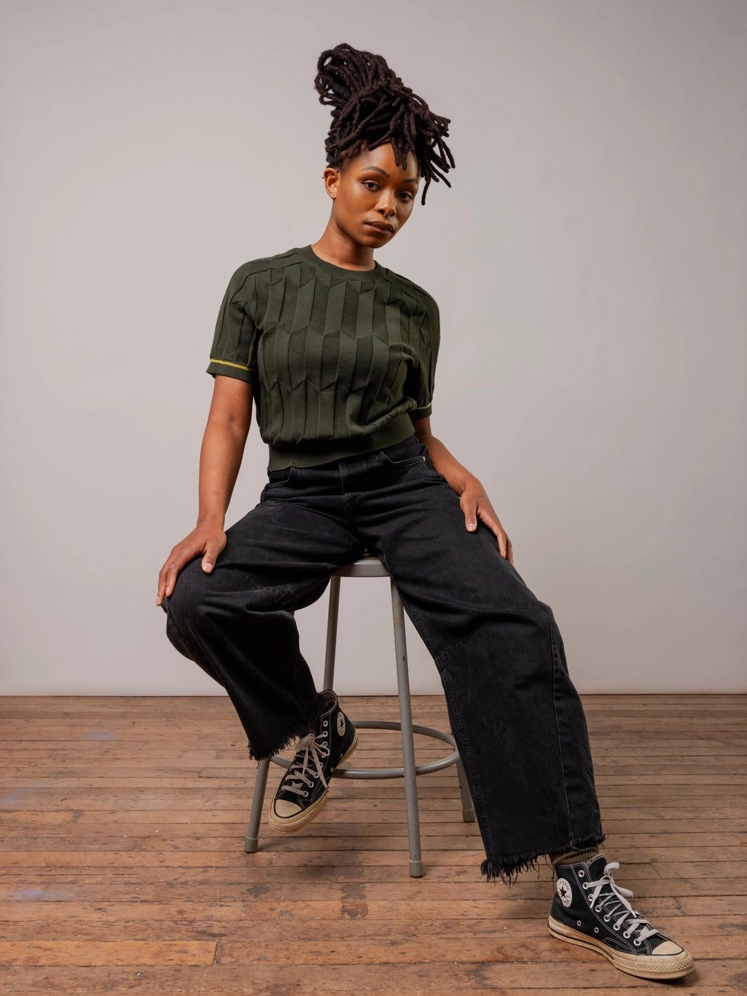 unit price perthe chevron ruben tee by the endery is an everyday essential with just enough detail. knit from rescued deadstock cotton, the chevron stitch adds texture and movement while creating a soft, flattering drape. clean, minimal, and made with purpose.