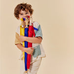 the canopy is made from 100% recycled plastic bottles and is completely free from PFAS and PVC, making it safer for kids and kinder to the planet. finished with a smooth, sustainably sourced wooden handle, it’s as practical as it is charming.