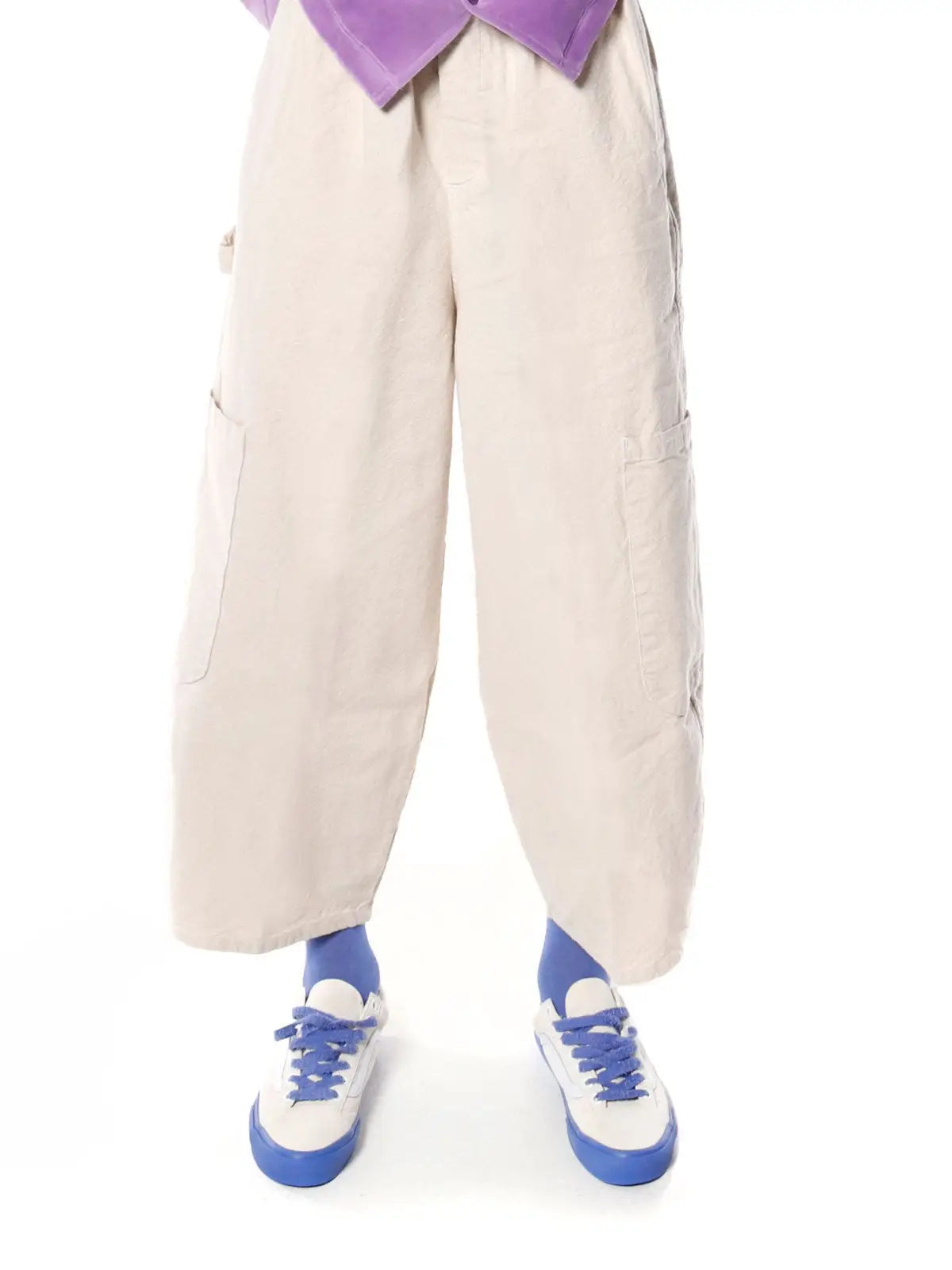 marius pants indigo dots are 100% natural hand-woven cotton. we recommend hand wash + lay flat to dry.