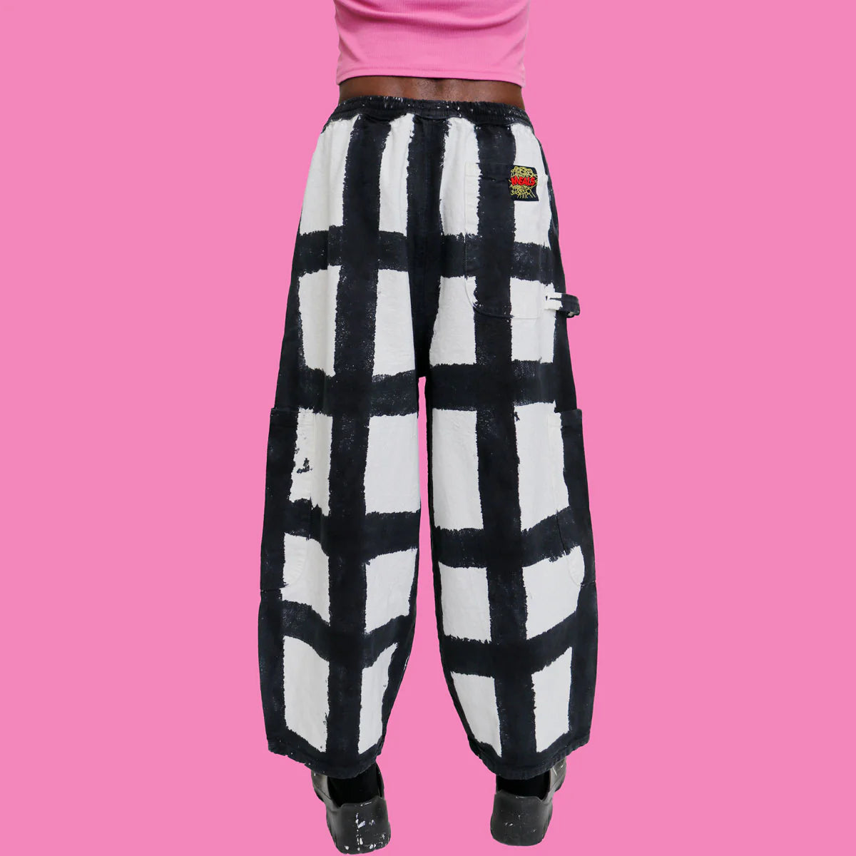 the marius pant madder and pink check by happy french gang are easygoing and endlessly wearable. they are designed to move with you—thanks to a flexible elastic waist, adjustable drawsticks, and roomy side seam pockets. one size fits many (recommended for sizes small to x-large). they are hand-block printed.