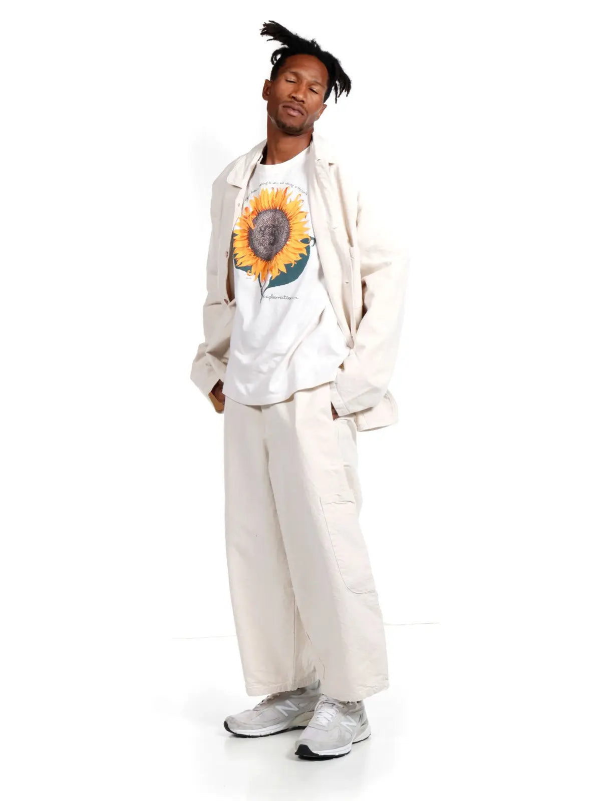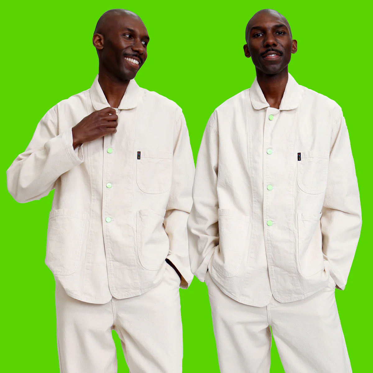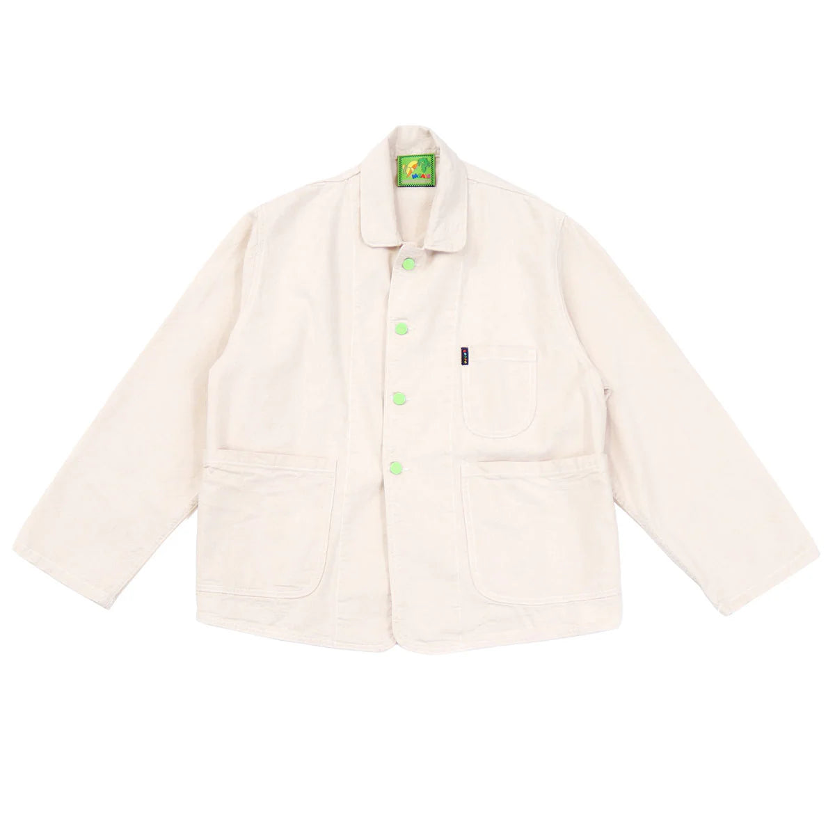 the kale forager coat by meals is an oversized, hearty canvas jacket with three generously sized pockets—perfect for snacks, tools, or tiny treasures. soft-washed and made from sturdy 10 oz cotton canvas, it’s over-dyed for a lived-in feel straight out of the box. it features a custom green 'm' button and a natural finish that can be dyed if you’re feeling adventurous.