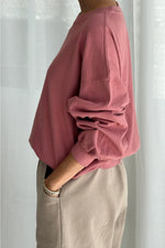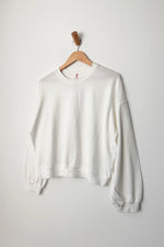 the le bon shoppe cali jersey sweatshirt is a playful take on the classic crewneck. crafted from 100% premium cotton jersey, it offers a lightweight feel, making it ideal for layering under jackets. it features a ribbed crew neckline, relaxed balloon sleeves, and a perfectly cropped length.