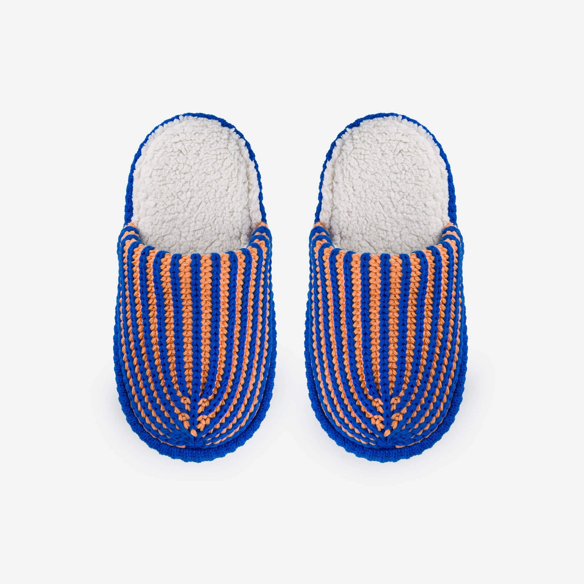 the chunky rib slide slippers by verloop knits are a plush, colorful take on your favorite spa-style house slippers. they feature a backless slide slippers knit with a two-tone chunky rib stripe pattern. they are fully fleece-lined with slip-resistant padded soles.